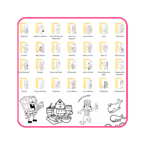 Mais de 90 temas de desenhos para seus kits de colorir.